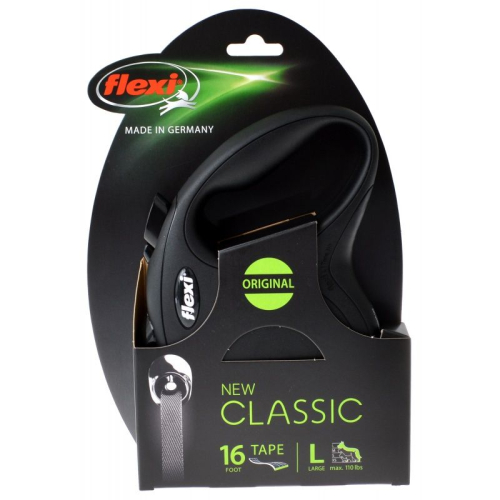 Flexi New Classic Retractable Tape Leash - Black - Large - 16' Tape (Pets up to 110 lbs)