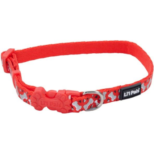 Li'L Pals Reflective Collar - Red with Bones - 8-12"L x 3/8"W